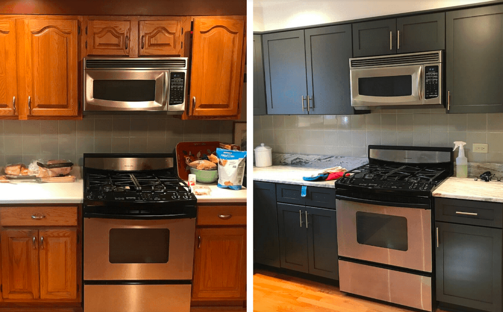 Locally owned and operated in Chicago, N-Hance of Chicago's cabinet painting service is a great alternative to traditional kitchen or bathroom remodeling options. Our cabinet painting process can transform your home for a fraction of the cost —we're usually about 25% the cost of cabinet replacing and 1/3 the cost of cabinet refacing. We repair, revitalize, and change the color of your existing cabinets using N-Hance’s eco-friendly, water-based, full-body finishes. We cure these finishes with UV light, similar to that used in the cabinet manufacturing industry, to give your cabinets quick drying times and increased durability. Get a free price estimate today!