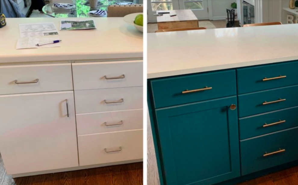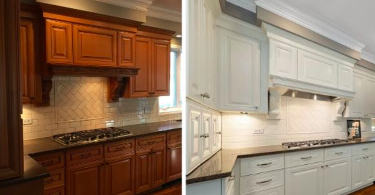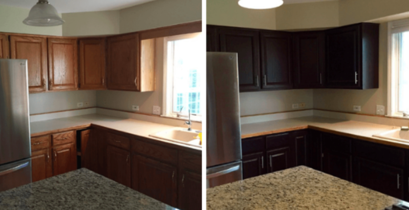 Our stained cabinet color change can modernize your outdated Golden Oak cabinets to Walnut, Cherry, Espresso, or any shade in between. Our unique process changes the color of your cabinets without the mess and odor of traditional cabinet staining.